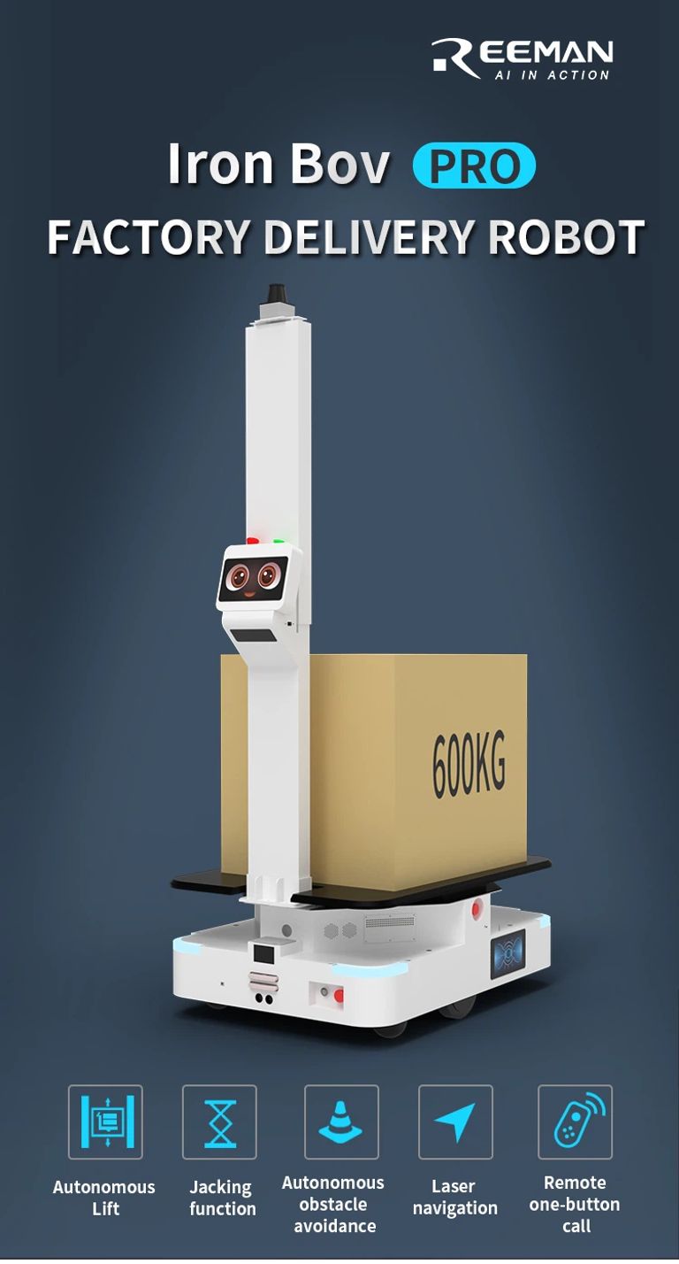 IronBov PRO z vgrajenimi algoritmi za navigacijo in pozicioniranje, ki jih je razvil Reeman Robotics, laserska SLAM navigacija, brez potrebe po talnih oznakah, velika nosilnost 600 kg, višina dviga 10 cm, samodejno rokovanje s policami, dvojna LIDAR in 3D kamera 50 m, 40 m, vsestransko zaznavanje okolice, stabilno in varnejše delovanje ter hkrati odpiranje platforme SDK vsem uporabnikom, da bi zagotovili celoten nabor razvojnih dokumentov za podporo sekundarnemu razvoju za uresničitev uporabe na terenu. Medtem odpiramo platformo SDK vsem uporabnikom, zagotavljamo celoten nabor razvojnih dokumentov, podpiramo sekundarni razvoj in uresničujemo uporabo robotov na terenu.
