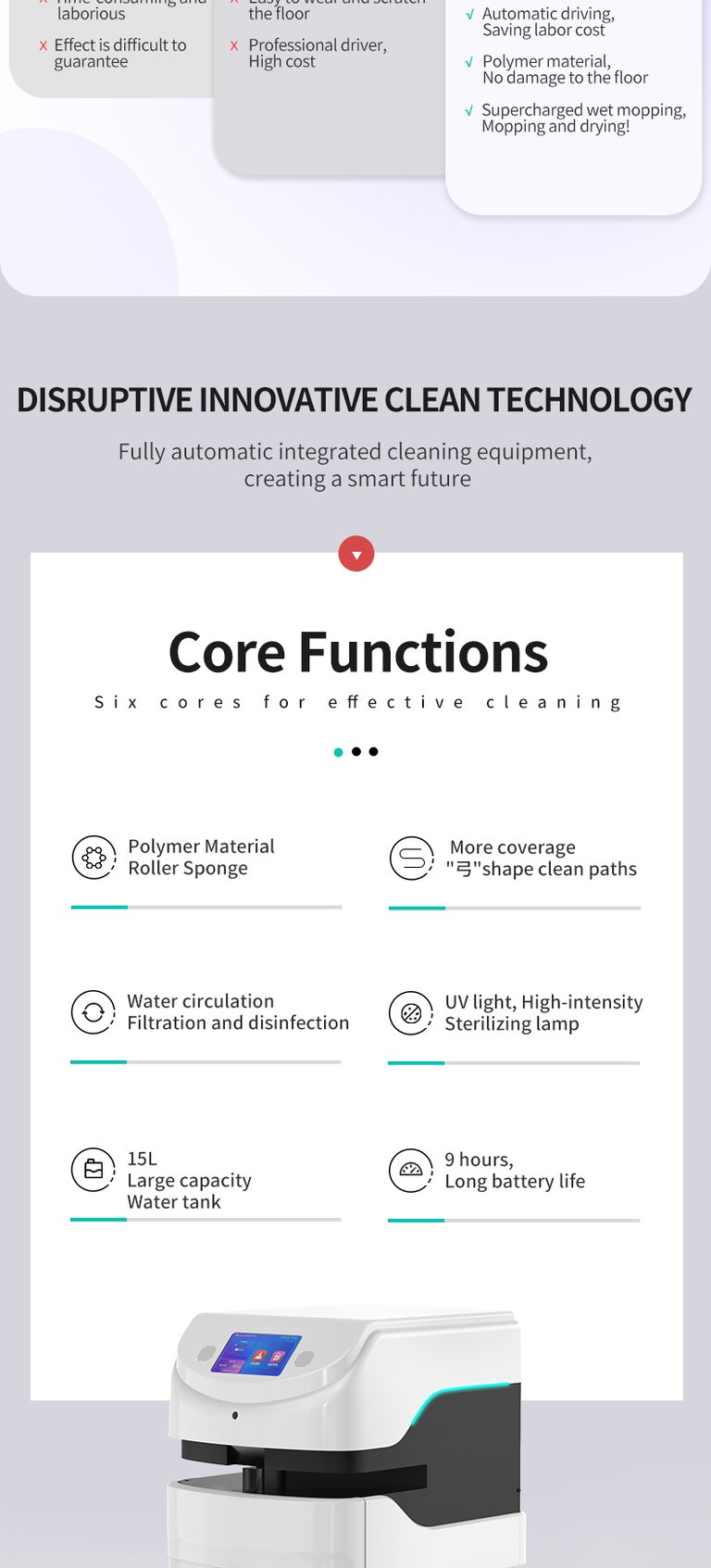 Reemanov robot za čiščenje polžev je večnamenski robot za čiščenje velikih komercialnih prostorov, ki se osredotoča na čiščenje notranjih prostorov in ustvarja dobro zdravstveno okolje za podjetja. Ta inovativen robot predstavlja vrhunec tehnološkega napredka in redefinira tradicionalne metode čiščenja. Uporablja najsodobnejše senzorske tehnologije in umetno inteligenco, da zagotovi učinkovito, temeljito in brezhibno čiščenje. Prvi na svetu je robot za pometanje, sesanje, brisanje in dezinfekcijo, ki se prilagaja različnim površinam in vrstam onesnaženja, ter tako zagotavlja brezskrbno vzdrževanje prostora ter omogoča zmanjšanje stroškov dela in povečanje produktivnosti.