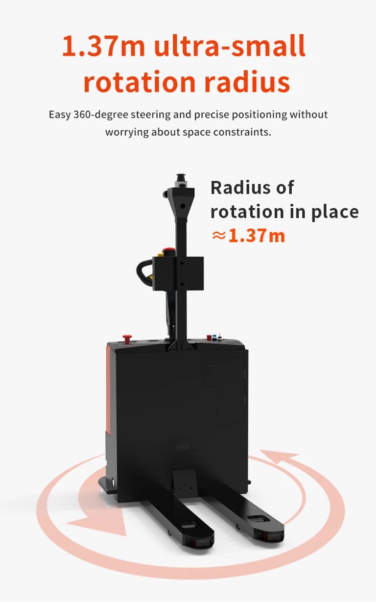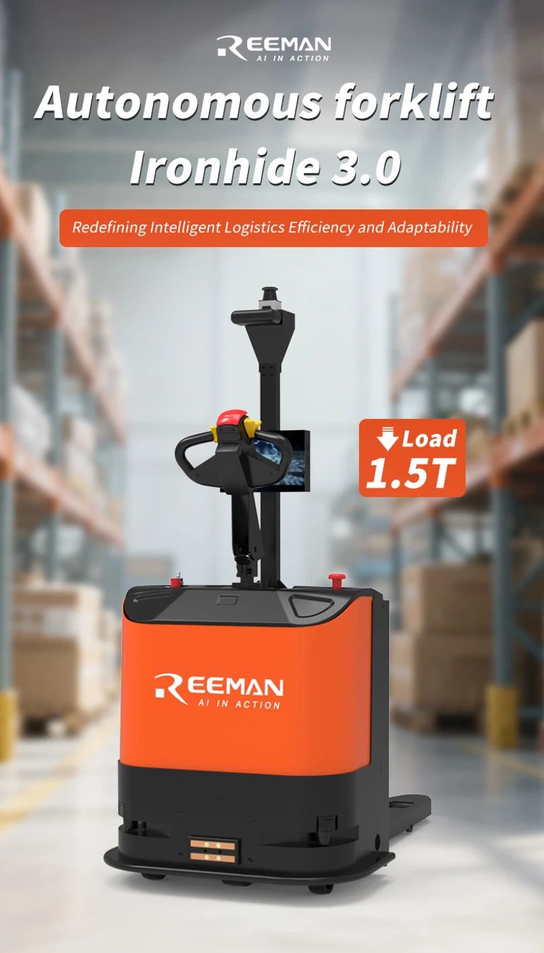 Avtonomni viličar Ironhide 3.0, vgrajen poseben PLC sistem za izvedbo dviga in poseben industrijski krmilni sistem, največja nosilnost 1,5 tone, širina vilic 550 mm, popolnoma usklajen z evropskimi in ameriškimi specifikacijami palet. Z natančnejšo poravnavo vilic in znatno izboljšano operativno učinkovitostjo, lasersko SLAM navigacijo, odsevniki niso potrebni, namestitev je bolj priročna, identifikacija palet je natančen viličar, vitkih dimenzij, majhen polmer obračanja, prilagodljivost aplikacijam v ozkih hodnikih, s 3D izogibanjem oviram, varnostnim robom in drugimi senzorji za 360° tridimenzionalno varnostno zaščito je najboljša izbira za ravnanje s paletnim tovorom in prevoz materialov ter druge delovne zahteve.
